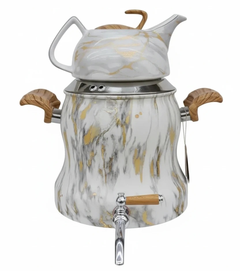 ست کتری استیل و قوری چینی 6 لیتر Ellaro