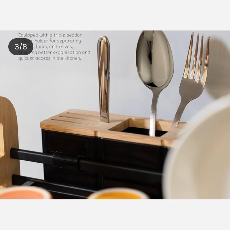 یکی دیگر از ویژگیهای قابل توجه این محصول، وجود جای قاشق، چنگال و کارد متحرک است. این بخش به کاربر اجازه میدهد بسته به فضای آشپزخانه یا نیاز خود، محل قرارگیری آن را تغییر دهد. چنین طراحی انعطافپذیری باعث میشود استفاده از جاظرفی راحتتر باشد و امکان سازماندهی بهتر ابزارهای کوچک آشپزخانه فراهم شود.