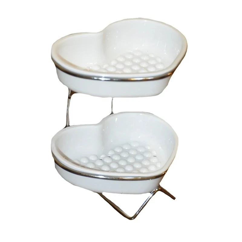 جا اسکاچی قلبی دو طبقه معمولاً از بدنه مقاوم و پایه فلزی ساخته شده که استحکام خوبی در برابر رطوبت و استفاده روزمره دارد. پایه فلزی آن به گونهای طراحی شده که تعادل مناسبی روی سطح ایجاد میکند و از لغزش یا افتادن ظرف جلوگیری میکند.