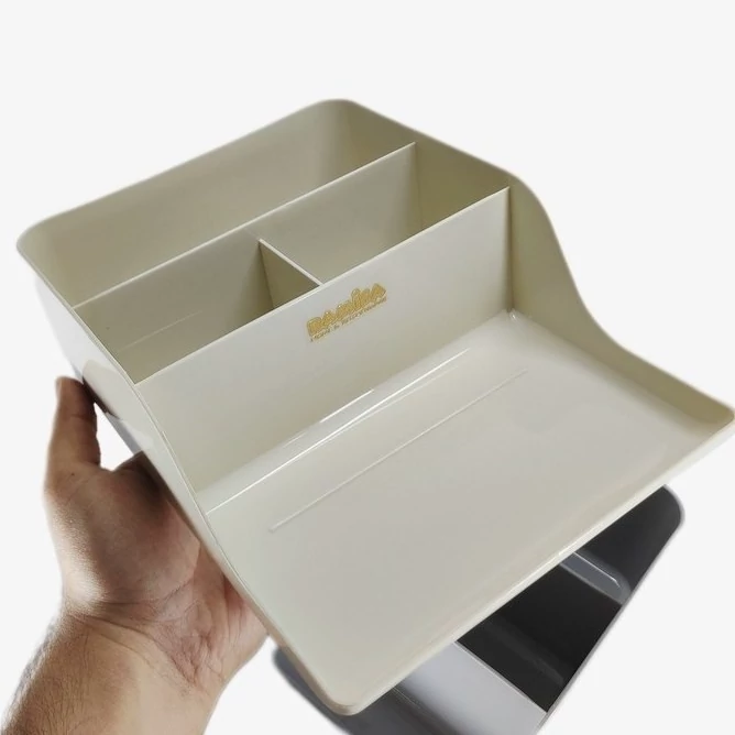 برای مثال میتوان در محفظههای آن رژ لب، مداد چشم، براشهای کوچک آرایشی یا سایر اکسسوریهای کوچک را قرار داد. به همین دلیل این محصول هم برای میز کار و هم برای میز آرایش کاربرد دارد.