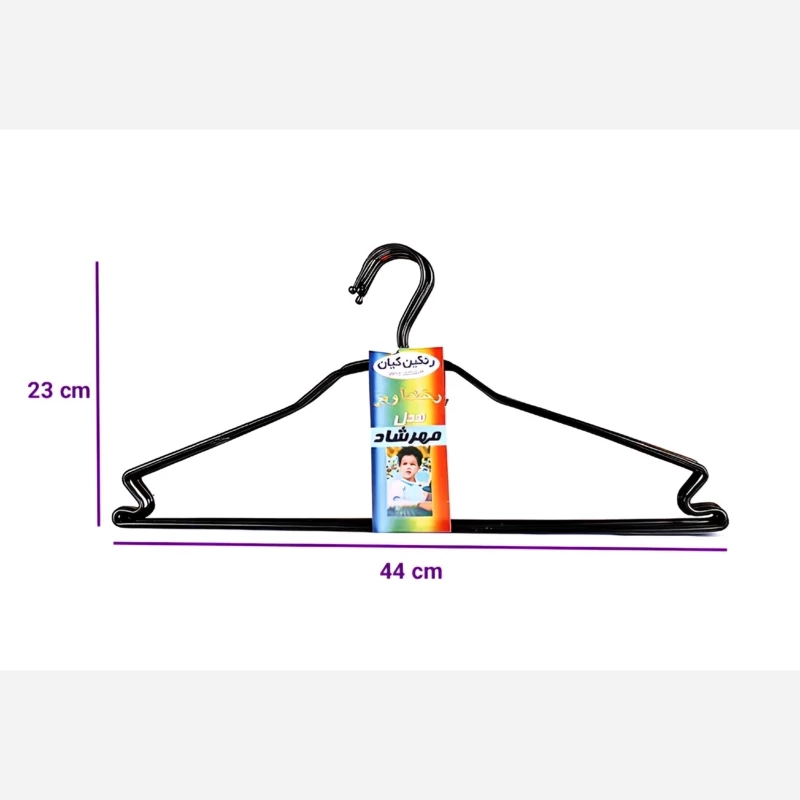 ابعاد هر رختآویز مهرشاد ۲۳ سانتیمتر در ۴۴ سانتیمتر است که اندازهای استاندارد برای آویزان کردن لباسها محسوب میشود. این اندازه باعث میشود لباسها به شکل طبیعی روی رختآویز قرار بگیرند و فرم شانههای آنها حفظ شود.