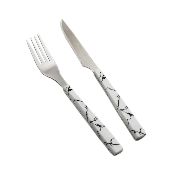 طراحی دستههای این ست نیز بسیار کاربردی و خوشدست است. دستهها به گونهای ساخته شدهاند که هنگام استفاده به خوبی در دست قرار میگیرند و کنترل مناسبی روی چاقو و چنگال خواهید داشت. یکی دیگر از مزیتهای مهم این دستهها این است که کثیفی و لکه روی آنها باقی نمیماند و به راحتی تمیز میشوند. این ویژگی باعث میشود شستوشوی آنها بسیار ساده باشد و همیشه ظاهری تمیز و براق داشته باشند.