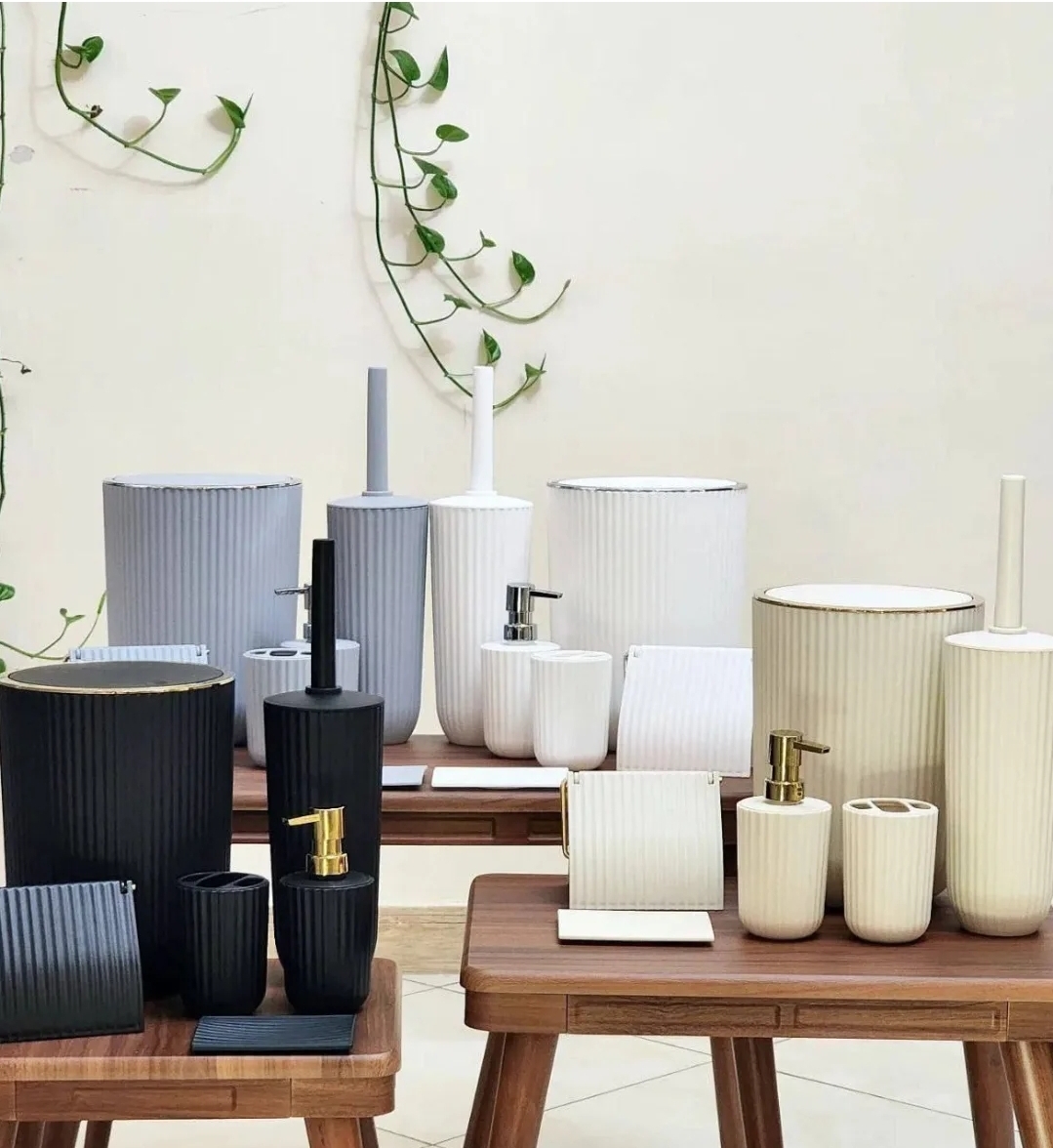 در بخش کارایی و کاربرد روزمره، وجود شش قطعه ضروری در یک مجموعه کامل، مهمترین مزیت این محصول است. سطل پدالی عملکرد روانی دارد و استفاده بدون تماس دست، به بهداشت بیشتر کمک میکند. فرچه، جا مایع، جا مسواکی، جا صابونی و جا دستمال رولی نیز همگی طراحی استانداردی دارند و نیازهای روزمره را بدون پیچیدگی برطرف میکنند. این هماهنگی باعث میشود فضای سرویس بهداشتی منظمتر و مرتبتر به نظر برسد.