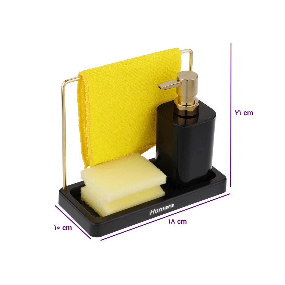 این محصول با ابعاد طول 18 سانتیمتر، عرض 10 سانتیمتر و ارتفاع 21 سانتیمتر طراحی شده و فضای کمی اشغال میکند، اما در عین حال کاربردهای متعددی دارد. وجود جای دستمال، جااسکاچی و مخزن مایع ظرفشویی در یک مجموعه باعث میشود همه وسایل مورد نیاز شستوشو در یک جای مشخص و مرتب قرار بگیرند. این نظمدهنده با ظاهر خاص و جذابی که دارد، میتواند جلوهای شیک به محیط آشپزخانه بدهد.