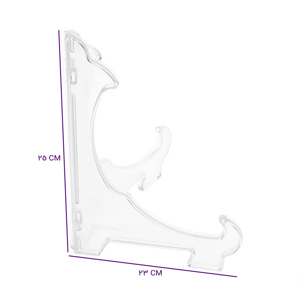 ارتفاع 25 سانتیمتری باعث میشود بشقاب به صورت ایستاده و با زاویه مناسب قرار بگیرد و جلوه زیبایی در ویترین یا روی میز ایجاد کند. همچنین عرض 23 سانتیمتری پایه باعث افزایش تعادل و استحکام آن میشود و از واژگون شدن اشیای قرار گرفته جلوگیری میکند.