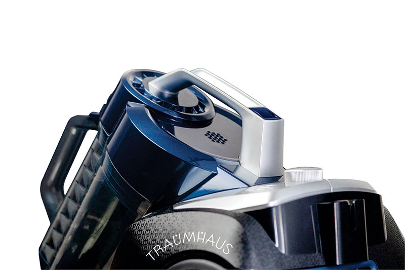 یکی دیگر از نقاط قوت این مدل، سیستم جداسازی گرد و غبار سایکلون است. این فناوری با ایجاد جریان گردابی در داخل مخزن، ذرات گرد و غبار را از هوا جدا میکند. نتیجه این فرآیند، راندمان جداسازی بالا تا حدود ۹۵ درصد است که کمک میکند گرد و غبار بهطور مؤثر در مخزن باقی بماند و قدرت مکش دستگاه در طول زمان افت نکند. این سیستم همچنین باعث میشود فیلترها دیرتر مسدود شوند و عملکرد جاروبرقی پایدارتر باقی بماند.