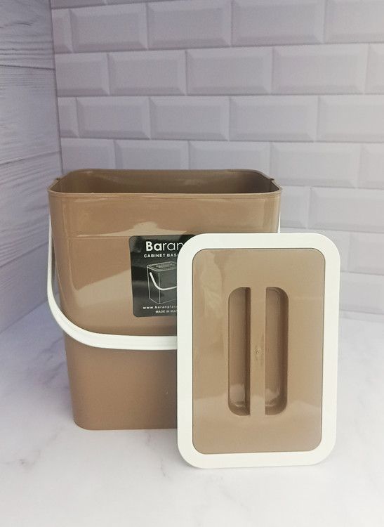 سطل کابینتی برند باران دسته دار درب دار ترکیب رنگ موکا و سفید