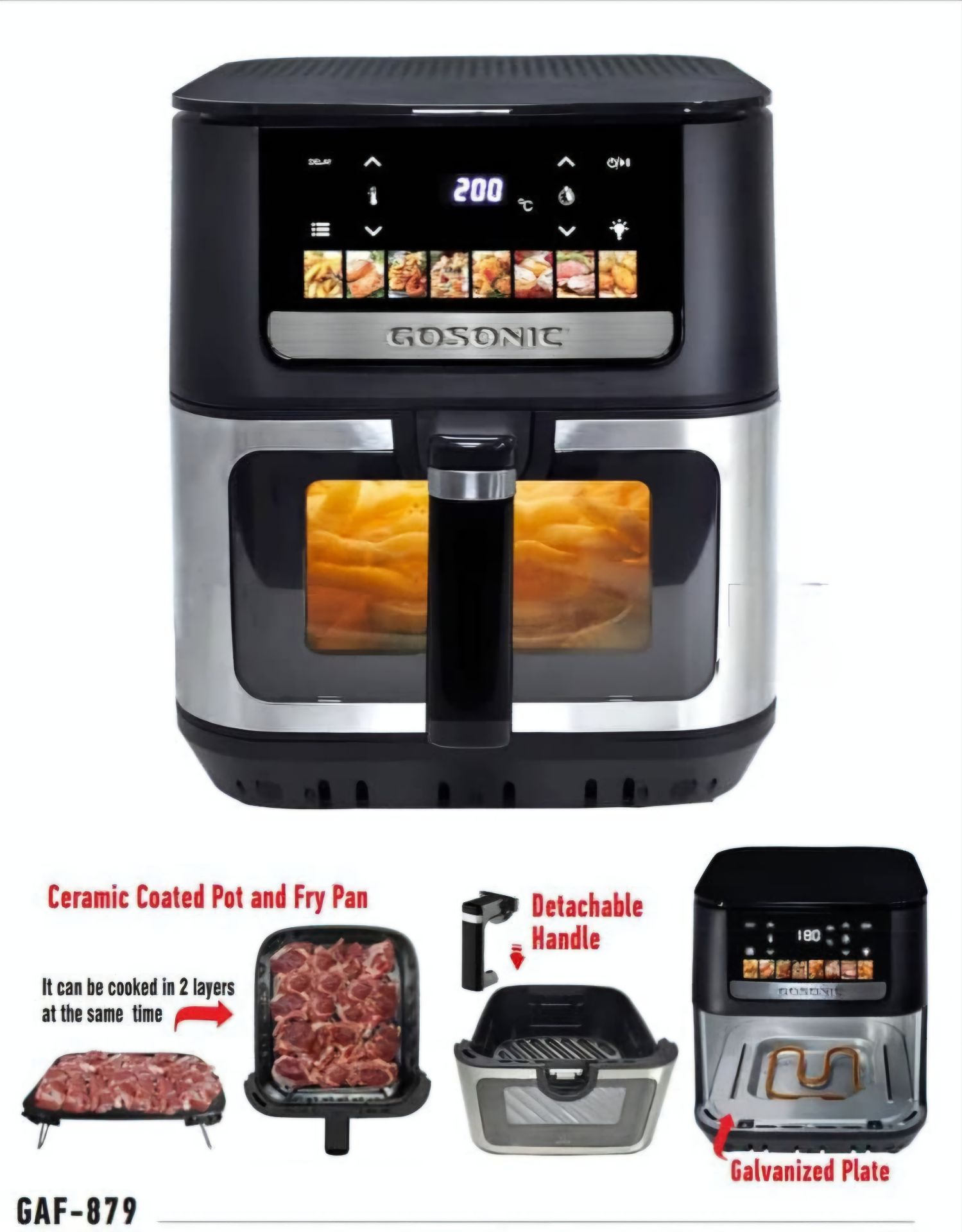 سرخکردن بدون روغن , برنامه پخت , گریل , یخزدایی , پخت ترکیبی دستگاه نمایش وضعیت: لمسی