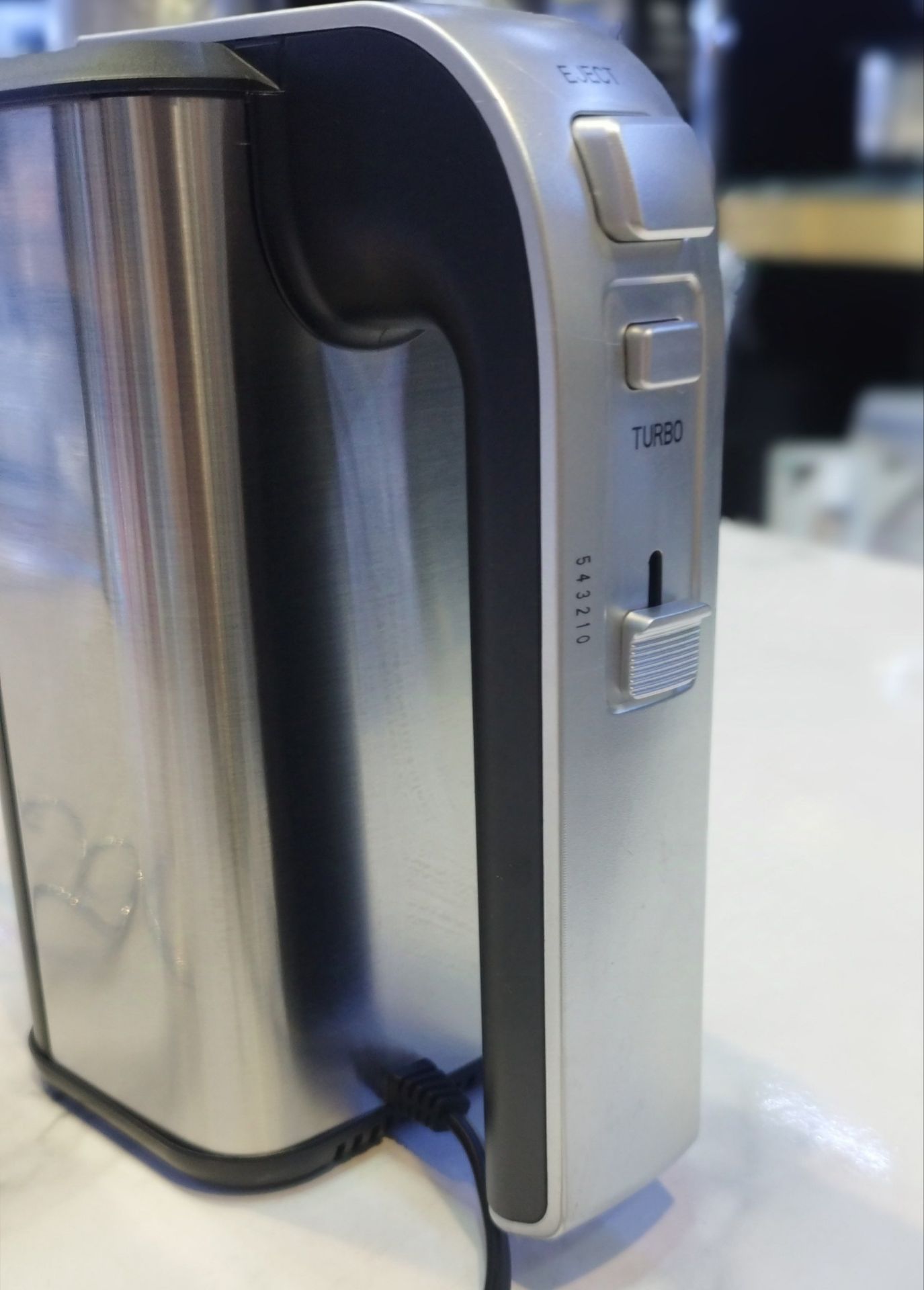 از نظر طراحی، بدنه ترکیبی استیل و پلاستیک مقاوم باعث شده این همزن هم از نظر ظاهری شیک و مدرن باشد و هم مقاومت خوبی در برابر ضربه و استفاده مداوم داشته باشد. بخش استیل جلوهای حرفهای به دستگاه میدهد و پلاستیک مقاوم نیز باعث کاهش وزن و سهولت در استفاده میشود. این موضوع بهخصوص در استفادههای طولانی اهمیت دارد، زیرا کاربر بدون خستگی میتواند با دستگاه کار کند.