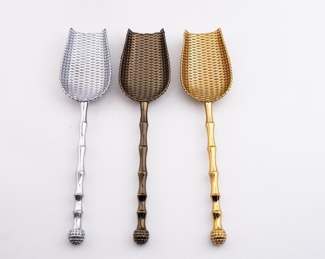 قاشق آجیل فلزی دسته طرح بامبو یکی از محصولات کاربردی و در عین حال زیبا برای سرو انواع آجیل و تنقلات است که با طراحی متفاوت خود توجه بسیاری از خریداران را جلب میکند. در نگاه اول چیزی که بیش از همه به چشم میآید ظاهر خاص این قاشق است. ترکیب فلز آبکاریشده با دستهای که الهام گرفته از فرم بامبو طراحی شده، باعث شده این محصول نسبت به قاشقهای معمولی ظاهر لوکستر و متفاوتتری داشته باشد. همین موضوع باعث میشود هنگام استفاده در میز پذیرایی، جلوهای شیک و مرتب به ظروف سرو بدهد.