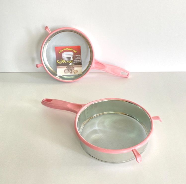 طراحی کاربردی و ابعاد مناسب الک آشپزخانه استیل دسته پلاستیک قطر ۱۵ سانت